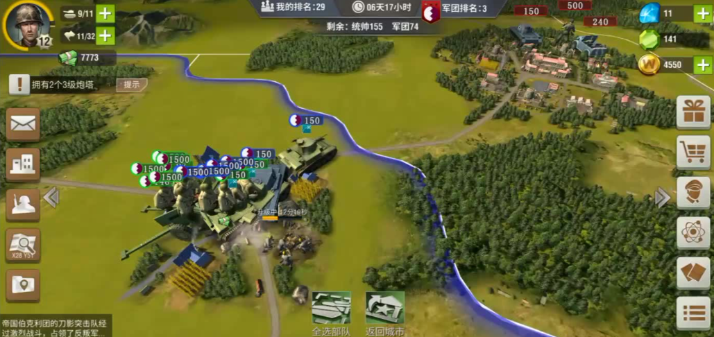 城防是玩家抵御敌方进攻的核心屏障,合理选择兵种与战术是突破城防的关键。重型坦克和火箭部队是攻打城防的主力兵种,前者凭借高防御和血量承担前排压力,后者依靠远程火力快速削减城防值。突击炮因其射程优势能在安全距离输出,而侦察机则用于提前探明敌方防御布局。攻打前需确保部队数量充足,建议轻坦与反坦克炮辅助牵制,避免主力过早损耗。