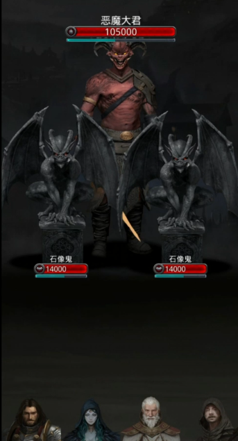 第一阶段它会使用魔法伤害技能,这时要注意保持全队血量健康;第二阶段转为物理伤害且无视晕眩效果。战斗中圣龙将军要保持嘲讽状态,利用反击造成主要输出。治疗职业需要精准设置技能,教宗保持100%治疗队友,法师60%治疗兼顾输出。神官骑士建议手动操作,关键时刻补充护甲和血量加成。注意石像鬼的物理伤害会同时出现,要及时应对。
