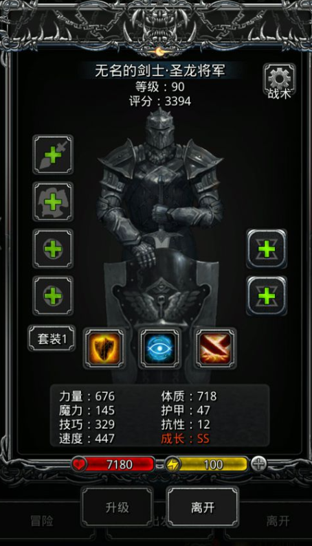 推荐使用圣龙将军作为主坦,搭配教宗、传奇法师和神官骑士的阵容。圣龙将军护甲最好堆到120血量7000左右,其他队员护甲不低于50,血量4000以上。装备选择上主坦建议穿戴火衣或御魔之衣提升抗性,全队最好配备双铁壁符文甲来应对流血效果。记得开局前手动用治疗技能提升魔法抗性,避免被恶魔大君开场秒杀。