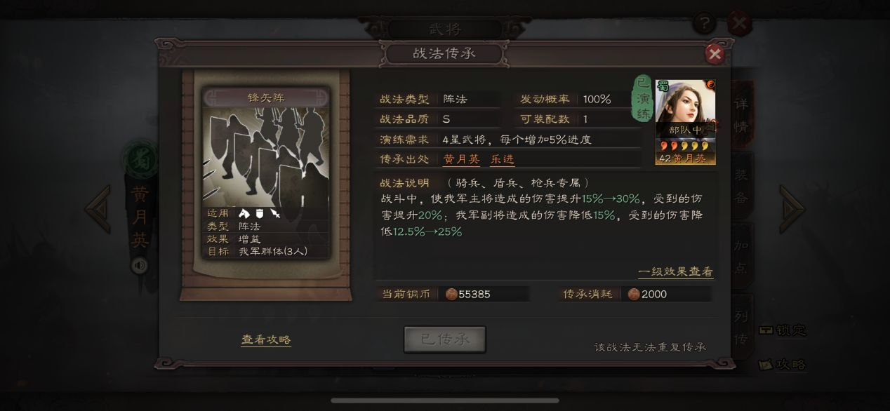 乐进的核心战法是临战先登,这个技能虽然发动率高达60%能稳定打伤害,但每次放完会让自己虚弱一回合。所以咱们给他配战法时得想办法弥补这个弱点,要么带增伤类战法让输出更猛,要么带控制或辅助类战法在虚弱期发挥作用。推荐优先考虑士争先赴文武双全刚勇无前这些能提升伤害的,或者带锋矢阵盛气凌敌这类团队增益技能。