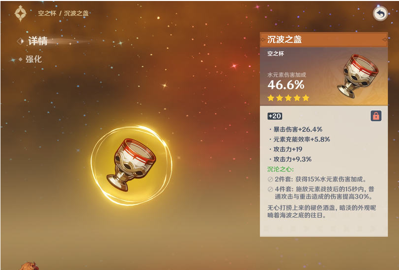 如果咱们把莫娜当辅助用,充能杯反而更实用。她的核心功能是大招增伤和挂水,充能效率决定了技能释放频率。带充能杯能更快攒满能量,让队伍循环更流畅。这时候杯子主词条选充能,副词条找点双暴和攻击力,稍微兼顾一下伤害。如果队伍里充能已经够用(比如有双水共鸣或雷神辅助),水伤杯仍然是优选,毕竟增伤效果也能提升辅助能力。