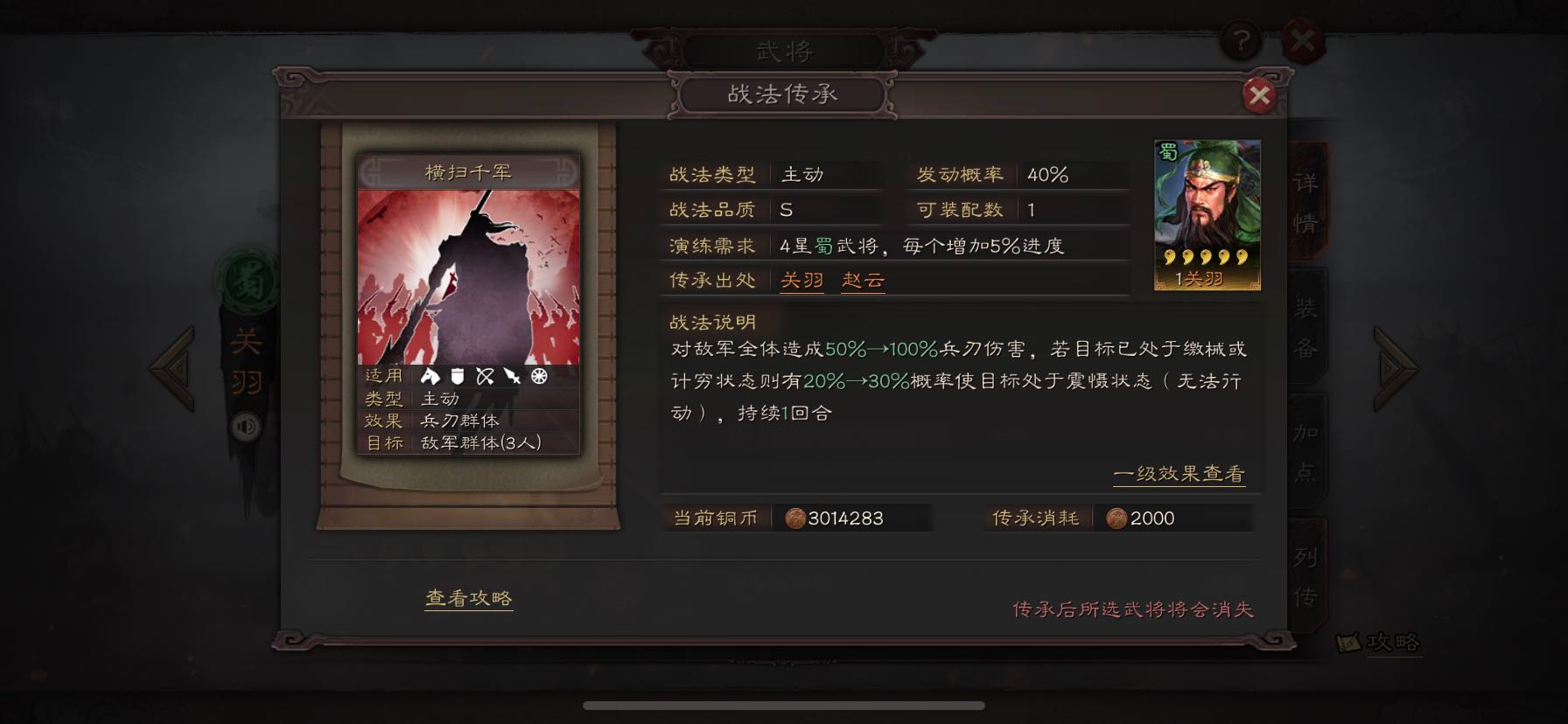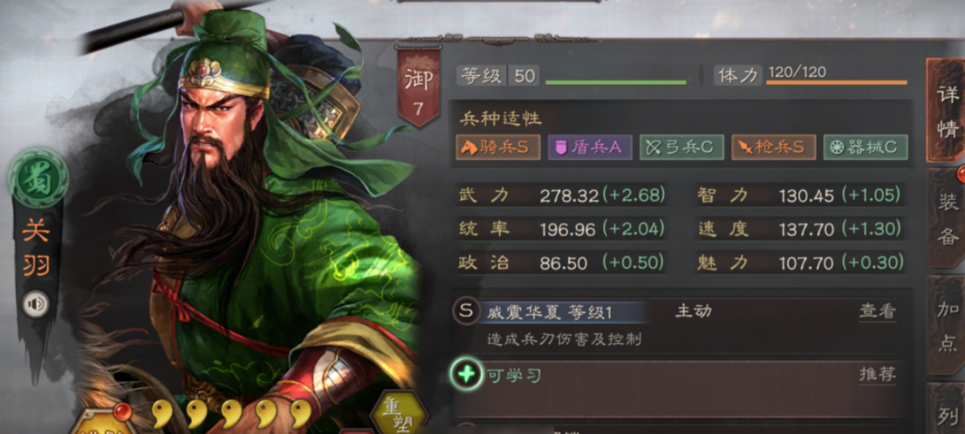 横扫千军作为AOE兵刃伤害兵器,可与盛气凌敌形成联动,对缴械目标有概率造成震慑控制,这种组合在五虎枪阵容中表现尤为突出。绝地反击则是后期发力的选择,通过叠加受击次数在第五回合爆发,适合持久战阵容。据水断桥作为新晋兵器,兼具伤害、减疗和统率降低效果,能进一步提升张飞的战术价值。需张飞的速度属性在武将中处于中游水平,实战中建议通过兵书或装备补足速度差距,确保其能在关键回合优先出手。