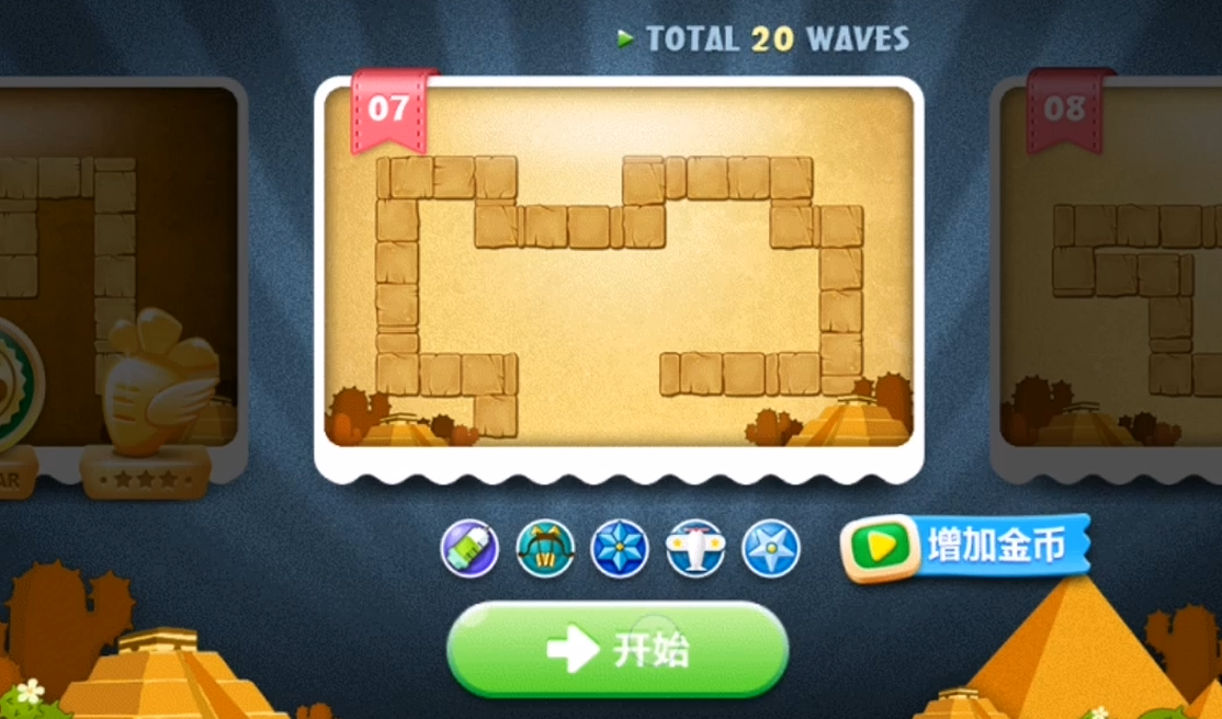 保卫萝卜沙漠7关的核心策略在于合理利用飞机、火箭与冰冻星星的配合,通过高效清理道具和集中火力布阵来获取金萝卜。开局系统会赠送一架玩具飞机,优先将其升级至中级并迅速摧毁绿色方框内的障碍物,随后升至满级。摧毁障碍后可获得火箭和毒针炮塔,应从上到下清理剩余障碍并将火箭升至顶级,其高伤害能有效应对前几波怪物。关键在于利用飞机远程穿透特性清理地图两侧道具,同时在中段布置冰冻星星形成减速控制区。