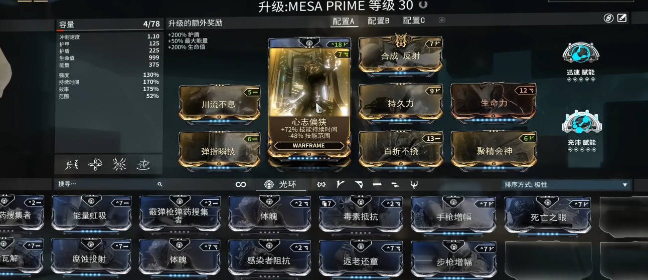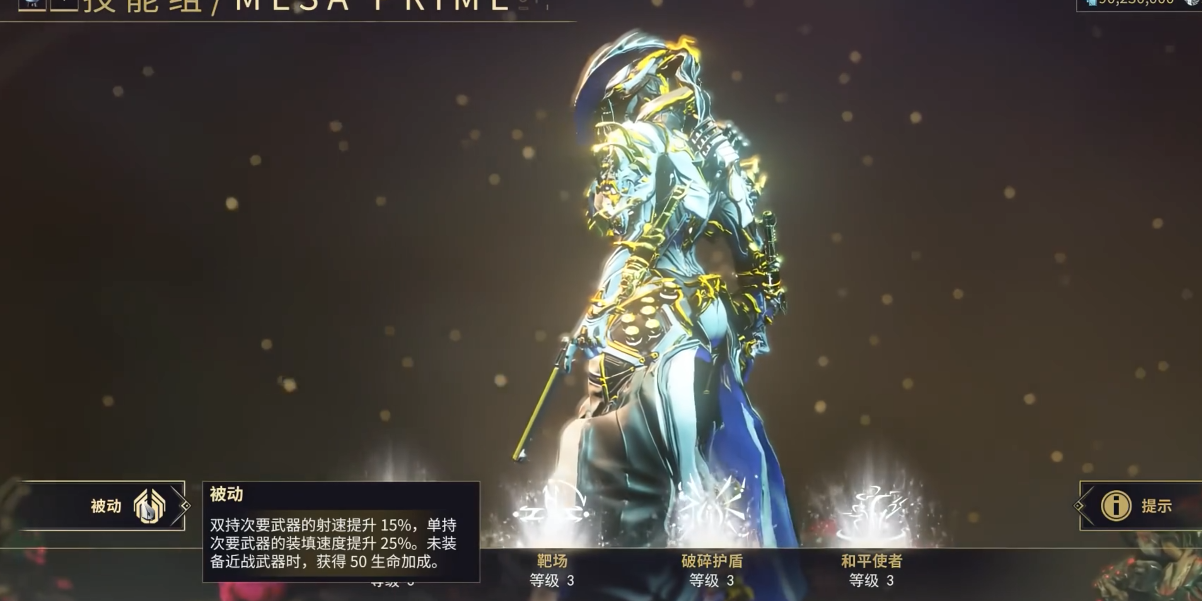 女枪(Mesa)是星际战甲中以高爆发远程输出为核心的特化型战甲,其设计定位为枪械大师,凭借显赫双枪技能和平使者实现精准且高效的清场能力。该战甲的核心属性围绕技能强度、持续时间和效率构建,范围属性对其主要技能影响较小。女枪的被动技能提供手枪类武器攻速加成与装填速度提升,进一步强化其枪械专精特性。