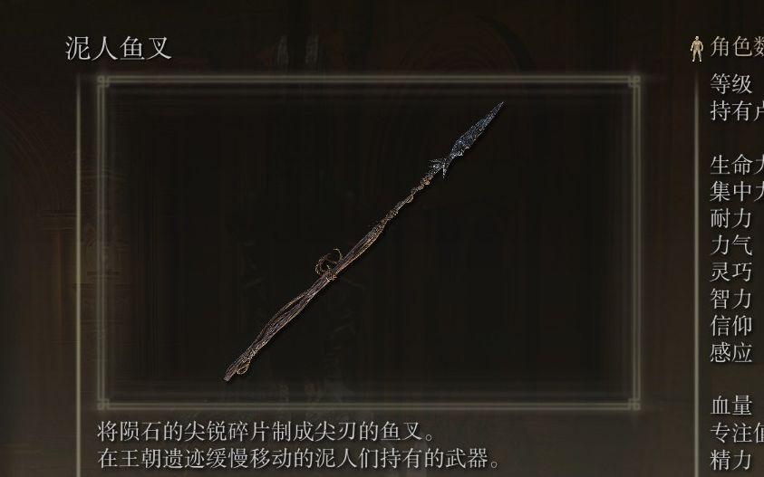 长牙和泥人鱼叉在特定玩法下也能大放异彩。长牙的超长刀身配合回旋斩战技可以覆盖极大的攻击范围,泥人鱼叉则因为自带魔力属性而成为冰枪战技的最佳搭档。最后要提的是死王子杖,虽然需要较高的属性要求,但它的法术加成的确对得起这份投入,是后期法术build的终极选择之一。