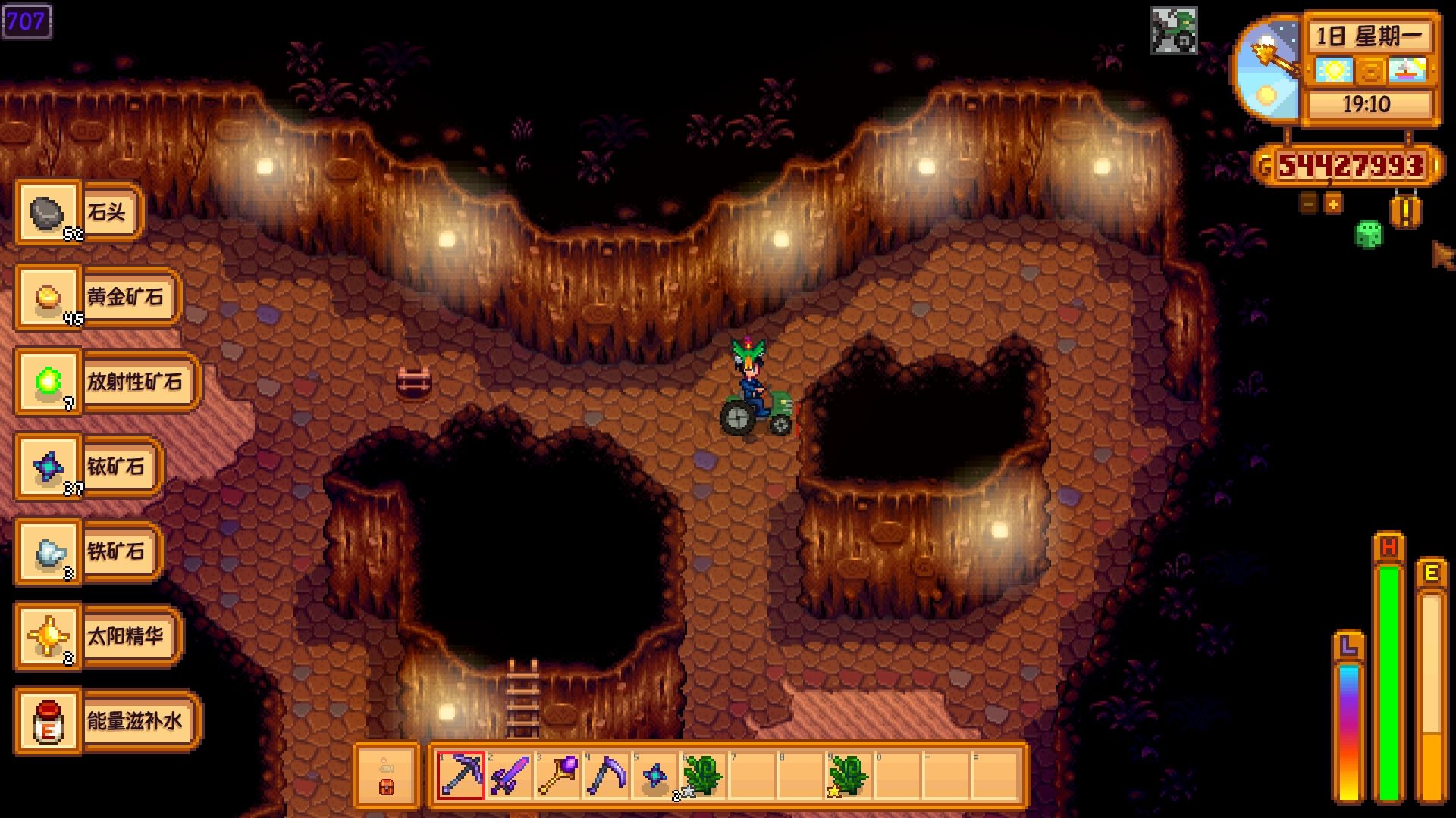 沙漠区域包含多个重要地点,如绿洲商店、赌场和骷髅矿洞。绿洲商店出售独特种子和商品,而赌场则需要完成神秘的齐任务才能进入。骷髅矿洞是沙漠的核心挑战区域,需使用骷髅钥匙解锁,内部矿层无上限,铱矿石出现概率随深度增加而提升。由于矿洞不保留进度,每次进入需从第一层重新开始,因此高效下矿需依赖炸弹、楼梯等道具,并注意保持血量安全。