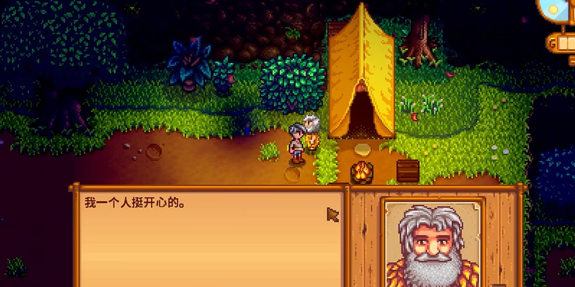 莱纳斯作为星露谷物语中的特殊NPC,居住在鹈鹕镇北边矿井附近的一处小帐篷里。这个位置位于地图的西北方向,靠近铁路入口的峭壁区域。与其他村民不同,莱纳斯的住所没有固定访问时间限制,玩家可以随时前往他的帐篷进行互动。