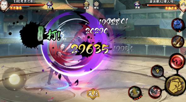 恶灵飞段的奥义技能也非常强力,攻击范围几乎覆盖全屏,而且几乎没有前摇动作可以扫地。最棒的是奥义结束后还能无缝衔接二技能,形成一套爆发连招。建议有大招就直接开,配合二技能+一技能+飞镰的连招,能在短时间内打出爆炸伤害,还能回复三个奥义点。这个忍者的普攻也很有讲究,第四下攻击有扫地效果,可以在浮空时接第一下普攻闪光,再打出特殊普攻,这样既能最大化伤害又能快速充能。