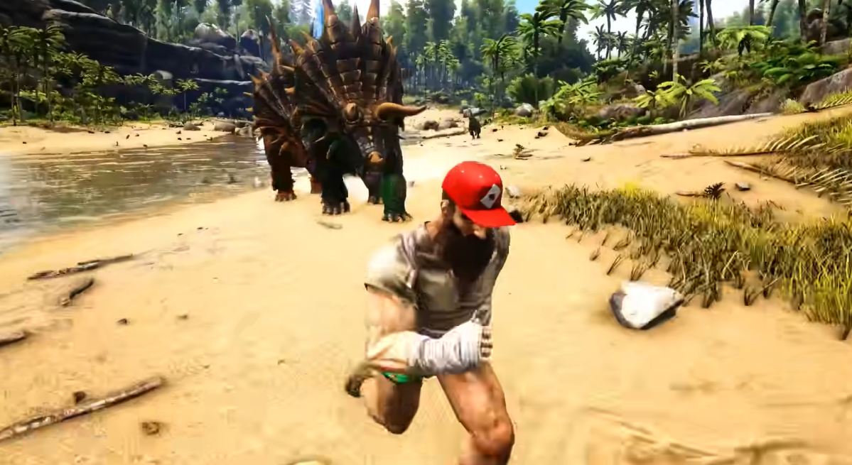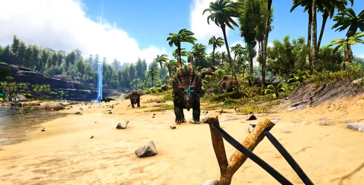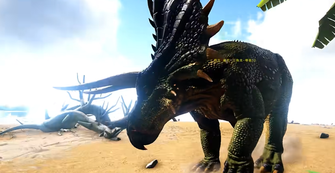 三角龙是新手前期性价比极高的食草恐龙,兼具采集资源与战斗能力。驯服三角龙需要掌握击晕技巧和食物选择,其头部具有80%减伤效果,需避免正面攻击。推荐使用弹弓或麻醉箭远程消耗,配合地形卡位实现安全击晕。驯服后可作为新手保护伞,16级解锁鞍具即可骑乘。
