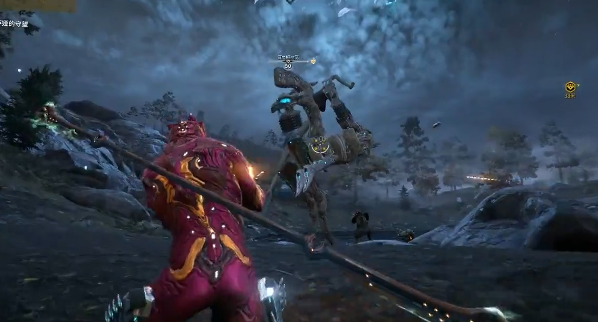 实战中需注意夜灵撼地者的技能前摇动作,例如地面震荡前会有明显的蓄力效果,及时躲避可减少战损。若战斗时间过长,夜灵撼地者可能传送至其他区域,因此建议携带夜灵诱饵道具,充能后能限制其移动范围。充能方法需利用轰击使掉落的能量碎片,将其引导至诱饵附近完成充能。