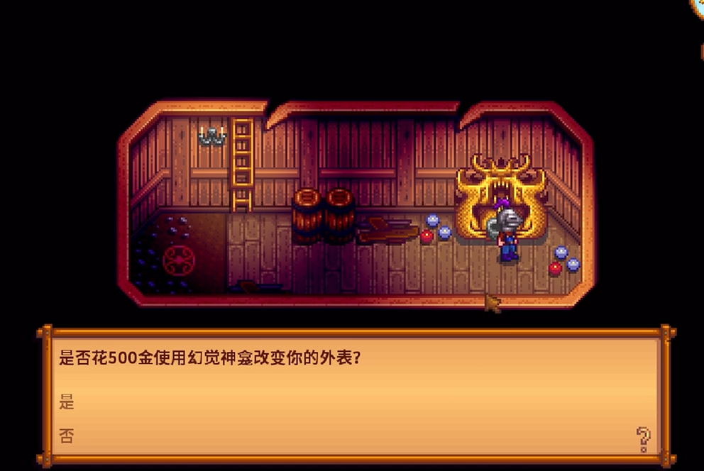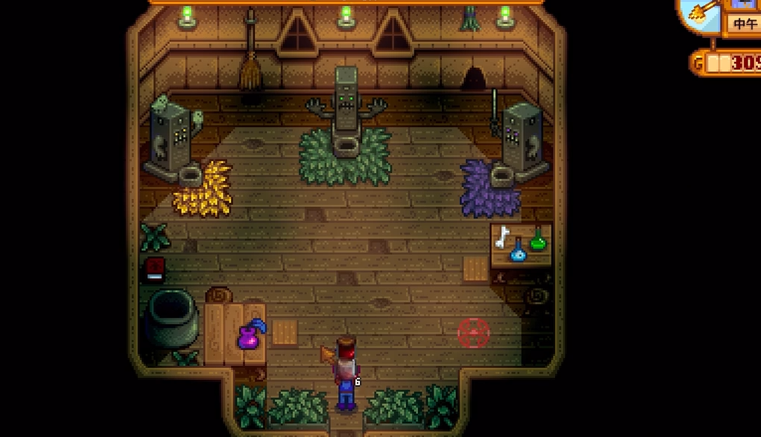 进入女巫小屋后,记得先拿走桌子上的魔法墨水。这是任务的关键物品,之后踩一下右侧的红圈,就能传送到魔法师的小屋。在这里可以找到幻觉神龛,花费500金币就能改变角色的外观。魔法师还会送你一本召唤之书,以后可以制作祝尼魔屋,自动收集农场作物。整个任务流程并不复杂,重点是提前准备好虚空蛋黄酱,避免来回跑浪费时间。