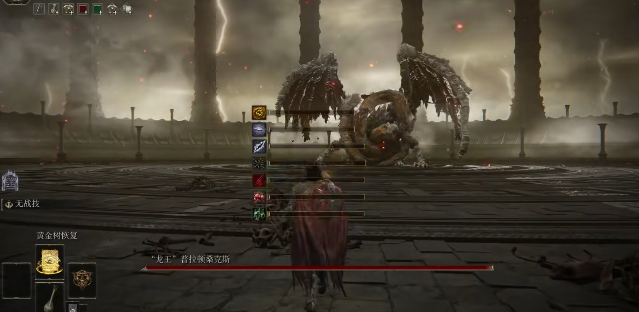 要前往隐藏BOSS龙王普拉顿桑克斯的所在地,首先需要传送到天空之城法姆·亚兹拉区域的龙教堂屋顶赐福点。从该位置出发,沿着之前击败雷龙的路径前进,经过倒塌的立柱结构后,在左侧悬崖边缘可以观察到下方存在悬浮的石台。玩家需要准确跳跃至这些石台上,并沿着连续下落的平台逐步向下移动。