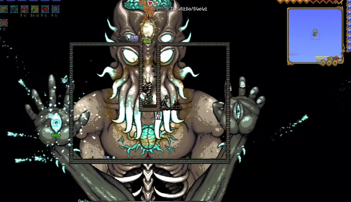 进入第二阶段后,被打掉的眼睛会变成克苏鲁真眼继续攻击,这时候咱们就可以集中火力攻击月总的心脏了。这个阶段要特别注意走位,被多个眼球包围时很容易暴毙。如果血量吃紧,可以传送到提前准备好的护士房间回血,但要注意月总会传送追击,所以回完血得立刻返回战场。月总的激光无法穿透方块,利用地形可以巧妙躲避;它的舌头攻击会禁疗,高速移动能有效规避;饰品栏紧张的话可以把天界壳换成烈火手套增加输出。