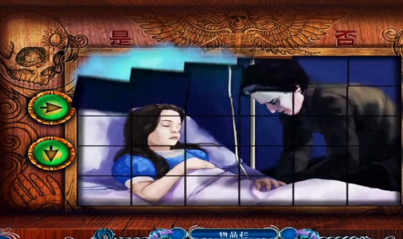 剧场后台是解谜的关键区域,玩家需要使用碎布擦拭右侧镜框获得玻璃碎片,用玻璃碎片割开红布下的雕像使其倒地。倒地后清除杂物可发现留声机,这是通往集团宝库的重要机关。留声机的操作需要分步骤完成:先安装唱片并调整猫头鹰身上的箭头方向,在前侧面放置高音符并安装曲柄,翻转留声机打开翅膀,在后侧槽口调整转盘位置。正确操作后播放唱片即可开启集团宝库场景,此处需完成禁闭之石标志的拼图游戏才能进入黑暗之城。
