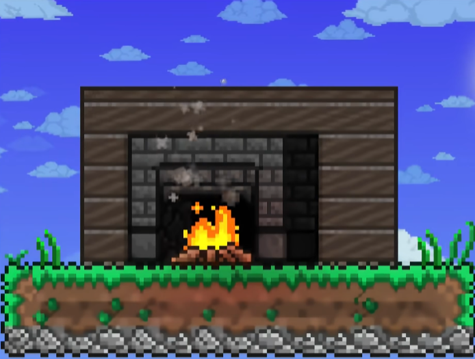 做一个温馨篝火其实特别简单,只需要准备好5个火把和20个任意类型的木材就行啦。这些材料在游戏前期很容易收集到,火把可以通过打史莱姆掉凝胶和木材合成,或者直接在地图的宝箱里找到。木材就更方便了,随便砍几棵树就能凑齐。把这些材料放在背包里,不用工作台也能直接合成,做好后会自动放进背包,超级省心!