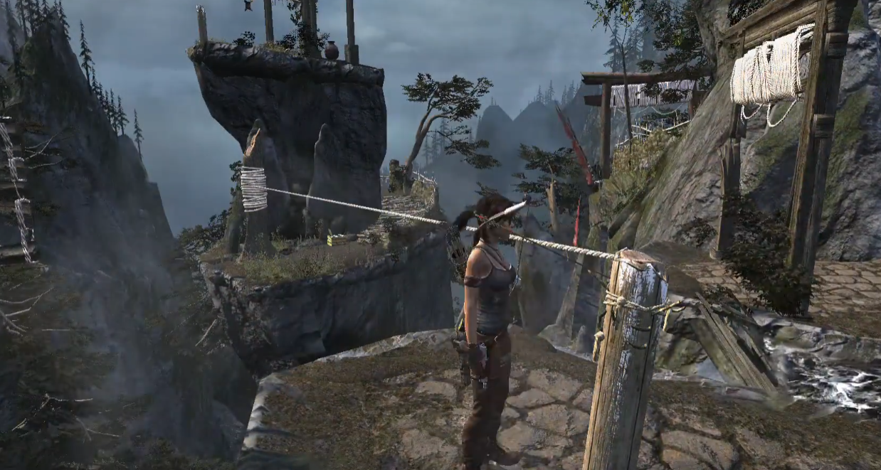 首先需要解决沿途的谜题,仔细观察环境中的线索,尝试用工具或机关打开新道路。一些谜题需要利用劳拉的开山刀或绳索箭激活机关,比如拉动钟摆或点燃油桶。攀爬时注意岩石颜色和形状标记的可攀爬路径,随时准备用工具固定抓手点避免坠落。
