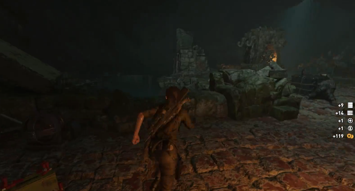 解谜过程中,记得多利用劳拉的钩斧和绳索箭矢,有些机关需要攀爬或者摆荡才能触发。比如某个环节需要你把重物拉起来才能打开通路,这时候就得找准支点发射绳索。战斗方面倒是不用太紧张,敌人数量不多,潜行或者直接开打都行,看你的喜好。