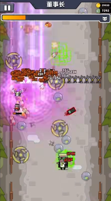 弹壳特攻队57关的核心难点在于应对11分钟和13分钟的蓝龙潮以及15分钟出现的董事长BOSS。针对蓝龙潮,建议围绕黄色喷火龙转圈避免被连续喷吐命中,同时利用转盘和范围技能配合激光配件减速效果达到70%以上。面对董事长BOSS时,需提前在11分钟前选择鸡腿较多的区域作为阵地,确保生存空间。攻击力建议达到14000技能组合优先选择追光者、激光、无人机、足球和转盘,其中追光者需尽快升满以触发滚雪球效应。