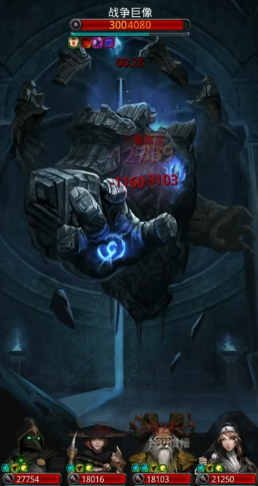 正确的走法是左→下→左→下,这样能避开不必要的战斗,直接找到战争魔像。路上会遇到两波怪,其中一波是群体眩晕的魔像,另一波是单攻的战争巨像。建议先用常规阵容清理小怪,再换成针对性阵容打BOSS。圣龙骑士带嘲讽和反击,搭配巫医手动奶,可以稳定过关。