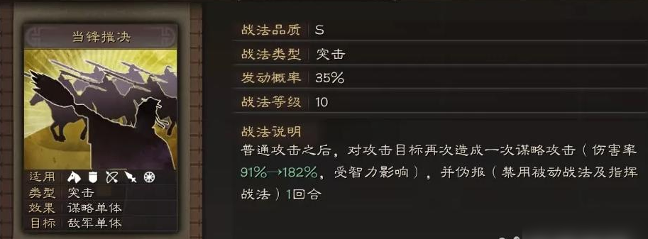 优先选择当锋摧决这类特殊战法,其效果可暂时禁用敌方指挥和被动战法,尤其对依赖减伤或增益的指挥体系具有显著压制作用。部分武将自带战法如郭嘉的十胜十败,能为主将提供前两回合的洞察状态,间接规避盛气凌敌等缴械类指挥战法的控制效果。需注意,净化、刮骨疗毒等常规解控手段无法清除指挥战法的负面状态。