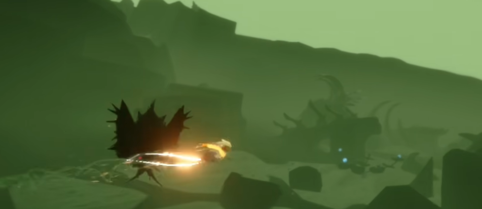 接下来到了石桥部分,别急着往前走,先躲在石桥尽头左侧的石头后面,因为第二只冥龙会过来巡逻。等它飞走后立刻跳进管道里,这时候只要不停下来第三只冥龙就不会发现你。穿过管道后就是最后一个关卡,这里既有冥龙又有落石,需要爬过长长的阶梯。注意这里不能飞,路上有很多石头可以躲避,大小石头都能用,所以躲落石不算太难。爬到最上面后,路上有小金人时不用担心落石,但要小心冥龙的巡视,等它飞走再继续前进。