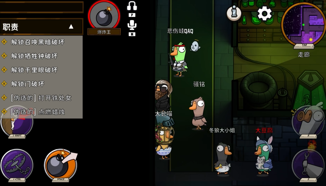 新图的复杂地形让观鸟者和冒险家有了更多发挥空间,观鸟者能穿墙观察但视野受限,冒险家则免疫环境破坏。殡仪员可以调查尸体身份,配合侦探能快速锁定嫌疑人。鸭子阵营的爆炸王和忍者适合制造混乱,爆炸王能放置可传递的炸弹,忍者则能同时刀两人但冷却时间较长。中立阵营的猎鹰改变了胜利条件,它存活时好人只能靠任务获胜,鸭子只能靠破坏。