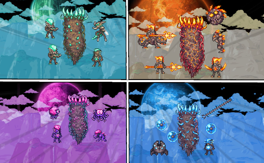 四柱(天界塔)是月球事件的核心挑战,击败后可召唤终极Boss月球领主。四柱分别为日曜柱、星旋柱、星云柱和星尘柱,每个柱子对应不同职业的装备碎片掉落。要多次挑战四柱,需通过特定方法重置事件。首先需确保已击败过四柱和月球领主,否则无法触发重复挑战。重置方法包括使用天界符或等待自然刷新,天界符可通过击败狂信教徒获得,使用后直接召唤四柱。