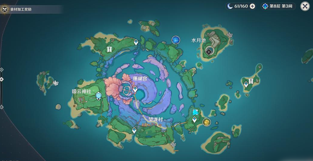海祗岛的地形结构复杂,包含多个解谜点和挑战区域。岛上特产包括珊瑚真珠和飘浮灵,BOSS无相之水也位于此区域。探索时需注意岛上分布的多处瀑布和珊瑚宫周围的特殊地形,这些区域往往隐藏着宝箱或任务触发点。部分区域需完成特定解谜或任务才能进入,例如水月池的雷灵解谜需前置条件。