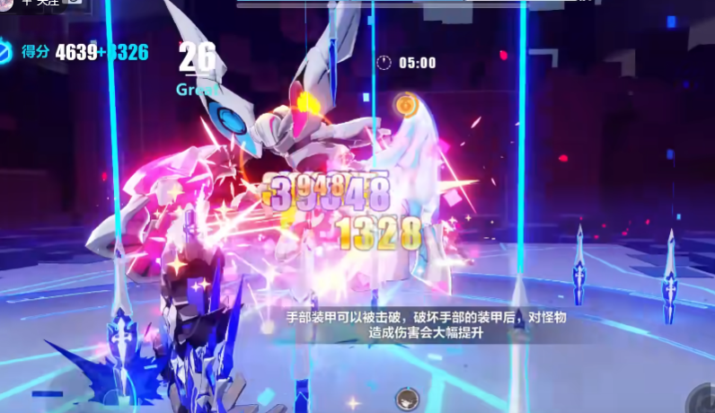阿湿波的技能前摇比较明显,比如双手抱头时一定要向左右闪避,不然会被冲刺攻击命中。它的兔耳会发射激光,虽然速度慢,但范围很大,走位时要注意拉开距离。左手蓝色装甲闪光时会释放地波,近距离很难躲,最好提前远离。右手红色装甲抬起时会用多段拳击,伤害很高,别以为打不到就大意。如果左右手同时闪光,脚下会出现激光柱,被碰到基本就没了,这时候专心躲避,别贪输出。