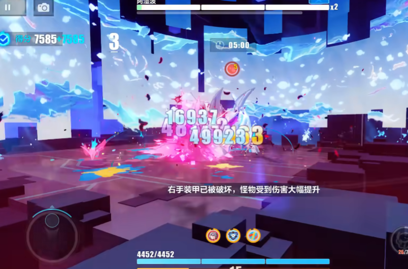 首先要注意的是它的双手,在双手没被破坏之前,身体会有很高的减伤效果,所以优先破坏双手是关键。阿湿波的左右手分别有冰和火元素抗性,但破手效率不受影响,破手后身体会变得脆弱,这时候输出效率会大幅提升。