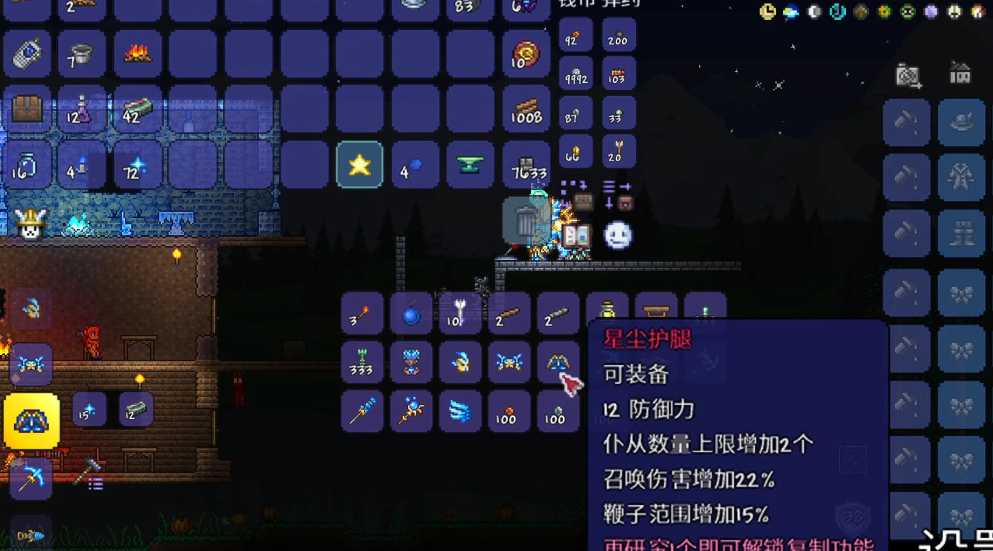 当具备一定防御能力后,可尝试挑战腐化之地或猩红之地的敌怪获取特殊材料。击败这些区域的敌怪有概率掉落暗影鳞片或组织样本,用于制作暗影套装或猩红套装。这两套装备不仅提供更高防御,还附带移动速度或生命恢复加成,是迎战首个BOSS克苏鲁之眼的重要准备。制作前需确保已建立炼金站并储备足够治疗药水。