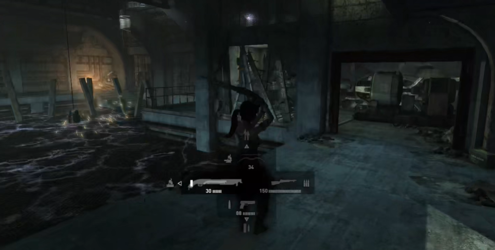 带电水流关卡是玩家常遇到的难点之一。关键操作在于利用场景中的木筏和电灯机关。首先进入实验室后,左侧有一个被木柱固定的木筏,用火把烧断木柱使其释放。随后转向右侧区域,用霰弹枪击碎玻璃障碍,将木筏拉至电灯下方作为垫脚平台。需迅速攀至对面平台,拉动顶部的拉绳使电灯升起,水体暂时断电后立即跳跃通过。