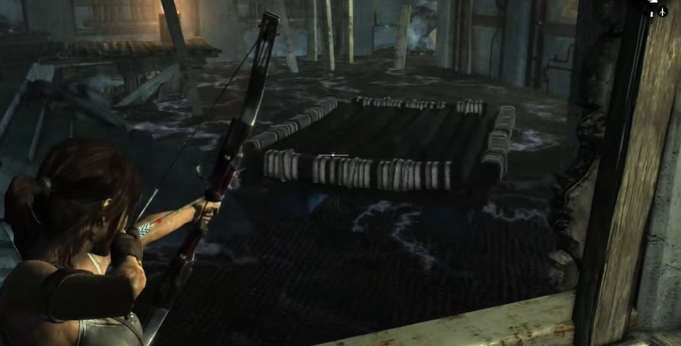 通过带电水流后,需返回将木筏重新拖至电灯正下方。当电灯因重力下落时,木筏会将其撑住,确保水体持续不带电。这一步骤完成后,玩家可从初始绑木筏的位置涉水抵达对岸楼梯,进入二楼获取宝藏。注意操作节奏,电灯升起后仅有短暂时间窗口可供通行,需提前规划路径。