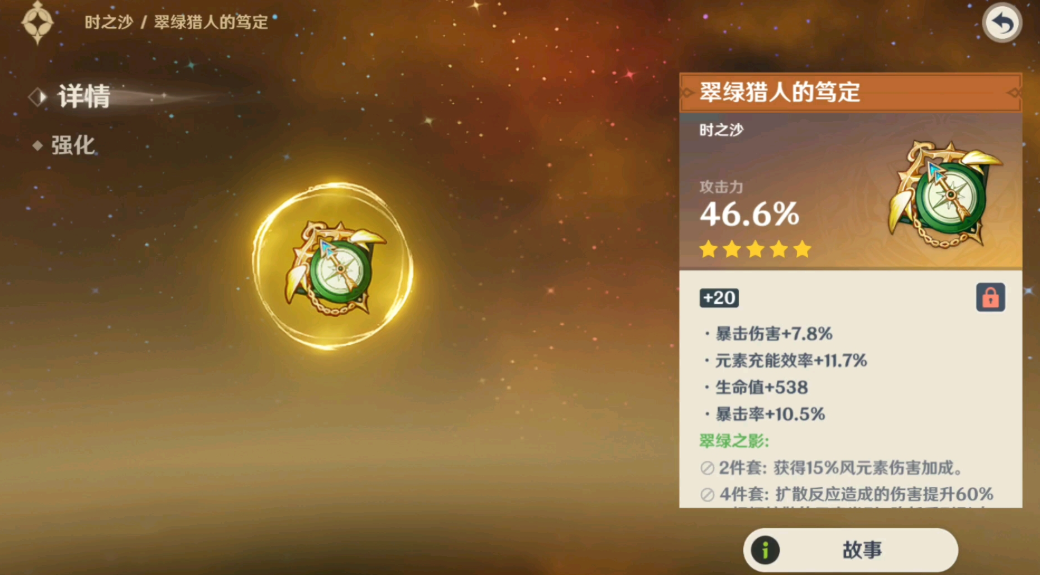 风伤流首选翠绿之影四件套,扩散减抗提升团队输出。若兼顾治疗,可搭配2翠绿+2攻击套(如角斗士)。物理流推荐苍白之火四件套或2苍白+2骑士,强化普攻与重击伤害。主词条选择攻击沙、风伤杯(物理流选物伤杯)、暴击/暴伤头,副词条优先双暴、攻击和充能。