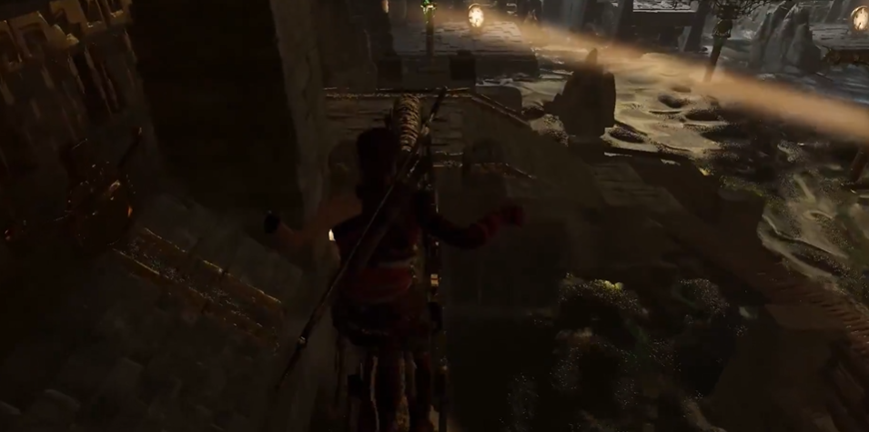 接下来需联动1号与2号镜子以激活通往4号镜子的路径。在2号镜子处调整光线至特定柱子后,返回1号镜子将其右转,使光线射向通往4号镜子的远端柱子。再次操作2号镜子,确保光线反射至同一目标,可攀爬至4号镜子平台。调整4号镜子将光线射向最后的目标柱子,随后从平台后方岩壁攀爬返回。