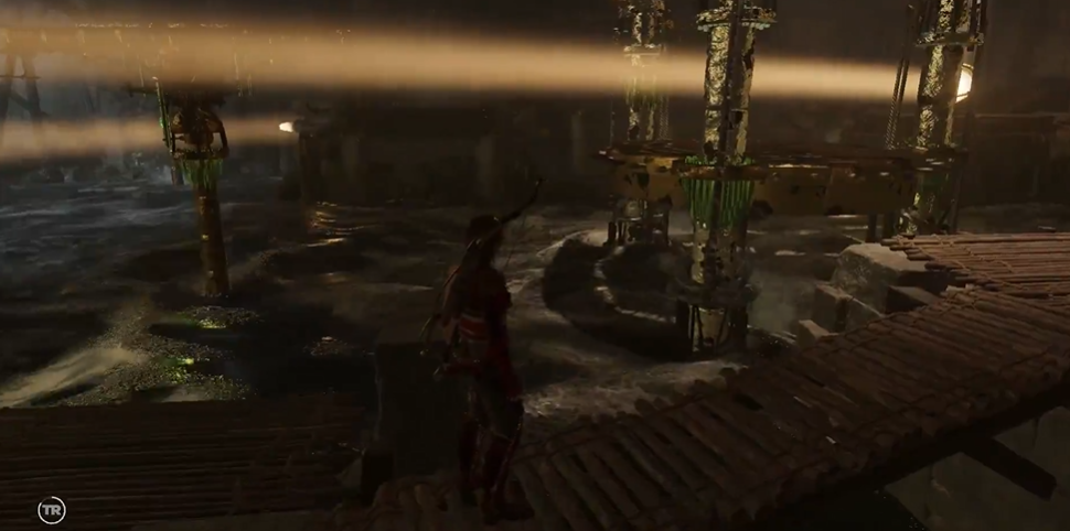 最终按箭头指示方向跳至中间平台,攀爬前方的柱子即可抵达石碑处互动完成古墓。若卡关,需检查每面镜子的光线是否准确覆盖目标柱子的受光点,尤其是4号镜子的角度需确保光线不被遮挡。整个过程需反复调整镜子角度并利用生存本能高亮提示确认关键路径。
