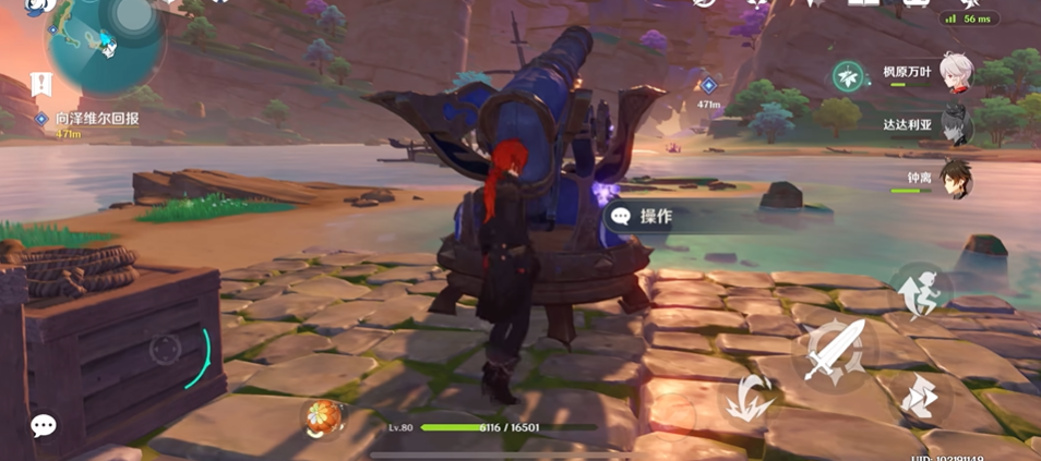 完成前置任务后,传送到踏鞴砂右侧的传送点,这里能看到一个大炮台。调整炮口方向对准西南方的山头,发射后就能轰开隐藏的屏障。这时候悬崖下会出现一个叫借景之馆的秘境入口,靠近交互就能解锁踏鞴砂副本啦。雷环境会持续掉血,建议带上治疗角色。