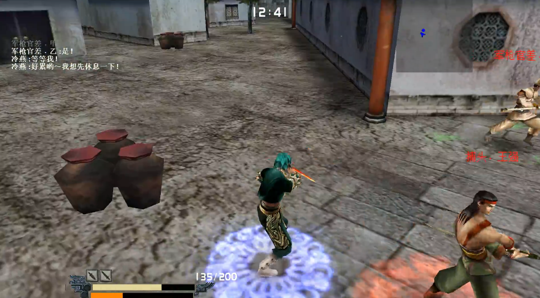 第四关金华城的核心思路是快速集火捕头王强,同时利用对话机制抢占先机。开局时周围有三个拿刀官差,建议直接锁定他们用剑的连招↑↑A↑↑A↓↑↑A快速解决两个,最后一个会逃跑报信,这时别急着追,先按ESC键取消对话僵直,趁敌人无法行动时换上匕首并吃火属性和攻击加成道具。等王强带兵赶来时,优先锁定他连续输出,冷燕暂时不用管,她没那么容易挂。如果被围攻就迅速闪到外围打碎坛子吃包子回血,再绕回来专打跑得最快的王强。