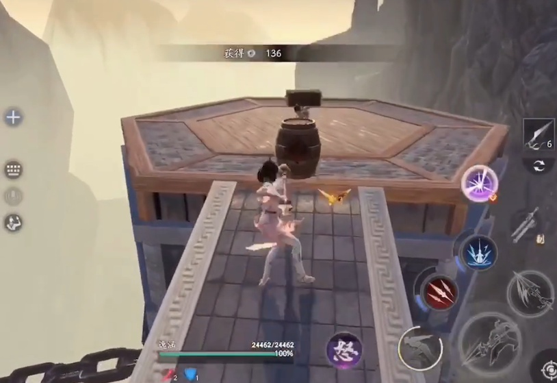 关卡中段会出现携带爆箭的远程兵与空中飞禽干扰,建议提前使用轻身丸提升移动速度,或服用底力丸增强生存能力。面对守墓人的连续俯冲,保持移动并利用场景中的石柱作为掩体是关键。当守墓人释放全屏范围技能时,需迅速贴近场地边缘躲避冲击波,锤子的跳砸(空中↓+攻击)可有效打断其施法前摇。