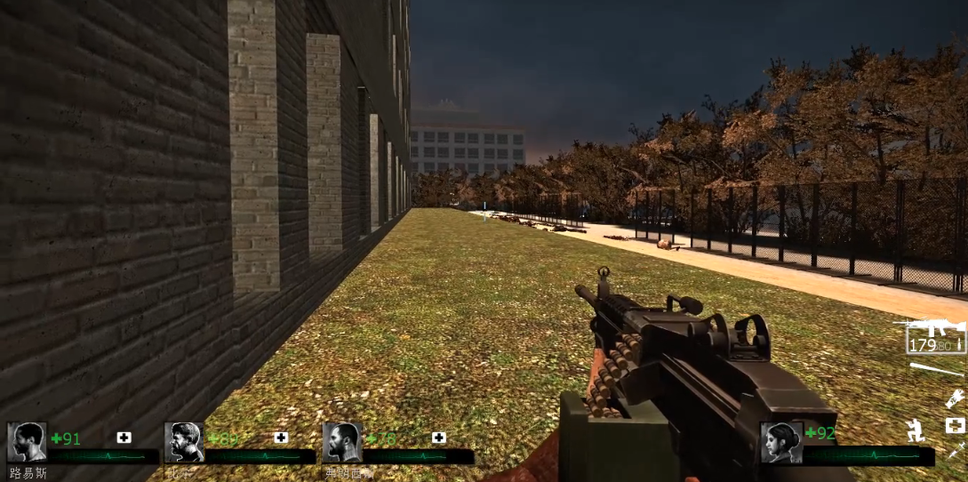 关卡中后期会进入室内区域,需注意听觉提示,提前预判特殊感染者位置。室内空间更狭窄且存在视觉盲区,建议由一名队员专职警戒后方。若听到WITCH哭声,必须立即停止射击并绕行,避免触发其狂暴状态。最终救援阶段会出现多波次尸潮,建议保留至少两枚燃烧瓶用于封锁入口,其余队员专注清理从其他方向突袭的敌人。