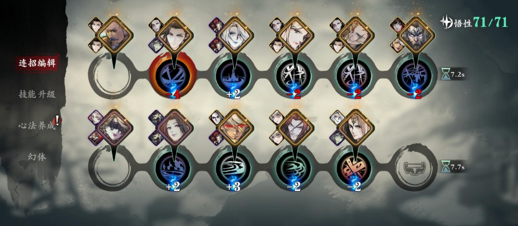 上链建议放夺命钩拉怪和永铭之志眩晕,下链用暗影飘香+芳华邪后减CD,再补上白衣留情和万魔之魂加暴击。技能点优先点满职业专属和觉醒技能,多余的点给右下角增伤被动。实战中先丢下链触发减CD和增益,再切上链打爆发,循环起来非常流畅。如果心法不全,就把嘈嘈切切单独放下链,进图先开真伤buff再输出。