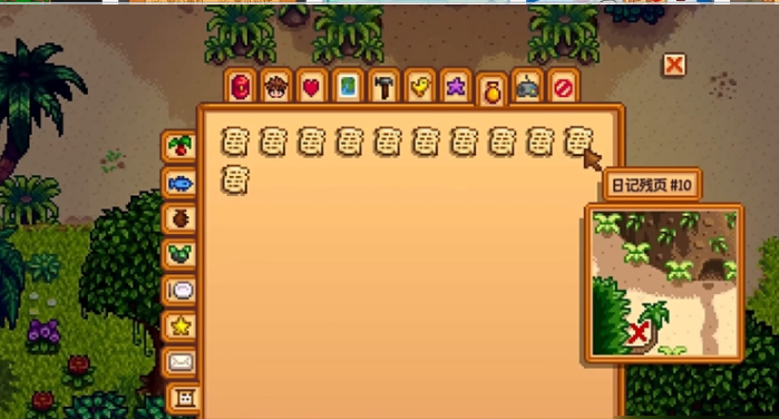 日记残页是星露谷物语中一种特殊的收集品,共有11页,由所留。这些残页记录了姜岛的历史背景和隐藏线索,主要通过挖掘、开箱子或完成特定任务获取。阅读残页可解锁姜岛剧情,其中第4、6、10页直接标注了宝藏位置,未获取对应残页则无法挖掘宝藏。