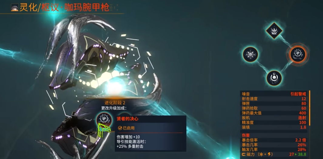 近战武器方面,咖玛腕甲枪和迦伦提恩大剑表现突出。咖玛腕甲枪是萌新最友好的近战武器之一,后续可升级为病变,具备高触发伤害和范围攻击特性。迦伦提恩则主打触发伤害,拥有重武器中最快的攻速和大剑类顶尖伤害,仅在暴击几率上稍逊于其他重型近战。单手剑影生同样值得关注,其均衡的性能使其成为前期过渡到后期的热门选择,获取方式仅需完成梦中梦任务。