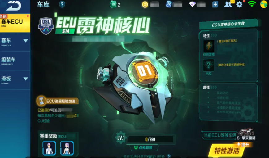 ECU系统的超频功能需要通过单局比赛或点券超频积累经验值解锁。左分支的热流反转特性在落后时提供小喷动力加成,适合竞速模式中后期反超;右分支则侧重道具赛的辅助功能,对超频驾驶的增益有限。若以竞速为核心玩法,建议将ECU等级提升至10级以上,并集中分配特性点到中分支的氮气相关强化项目。