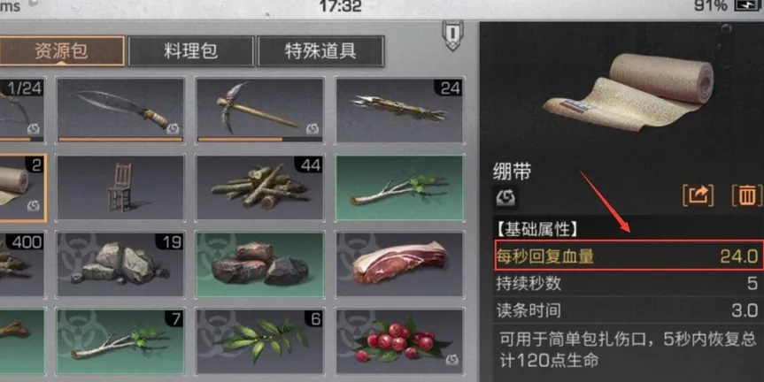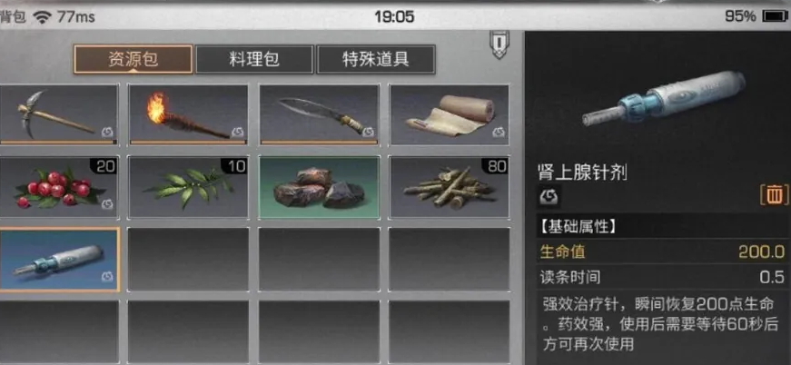 紧急治疗是幸存者在濒死状态下自救的核心机制,会消耗背包内预先准备的医疗物资。当角色生命值归零进入濒死状态时,界面会出现红色血滴图标与倒计时进度条,需快速点击紧急治疗按钮并确保3秒内不被攻击打断。成功触发后,系统将自动使用背包内的绷带或医疗箱,其中绷带消耗1个可恢复120点生命值(5秒内持续回复),医疗箱消耗1个可恢复250点生命值(2秒读条后生效)。若背包无治疗物品则无法施救,因此外出探索前必须检查物资储备。