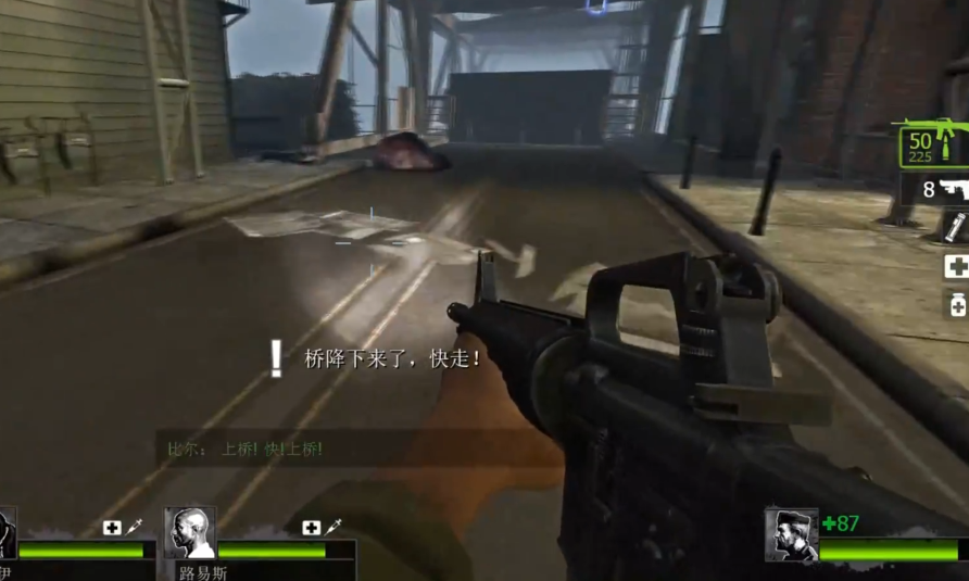 击败坦克后大桥闸口会落下,这时需要爬上梯子操作升起机关。但由于故障原因,必须有人下去重启发电机,单人模式下系统会默认让你扮演的比尔执行这个牺牲任务。跳下去前确保身上有胆汁瓶或肾上腺素,启动发电机后迅速向桥方向撤退,途中可能会被坦克投掷的石头击中,这是剧情杀无法避免。