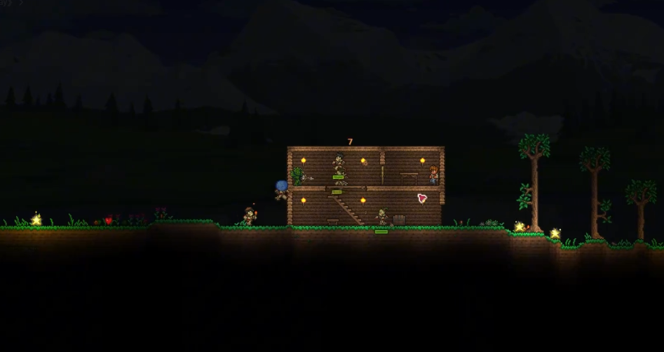 开局阶段的核心目标是快速建立生存基础并积累资源。首先需要砍伐树木获取木材,这是制作工作台、工具和初期庇护所的关键材料。优先挖掘地表层的石头和矿石,用于制作熔炉和铁砧等基础设备。夜晚降临前务必搭建简易房屋,避免被僵尸和恶魔眼等敌对生物袭击。初期推荐优先制作木平台,便于上下移动和探索地下洞穴。