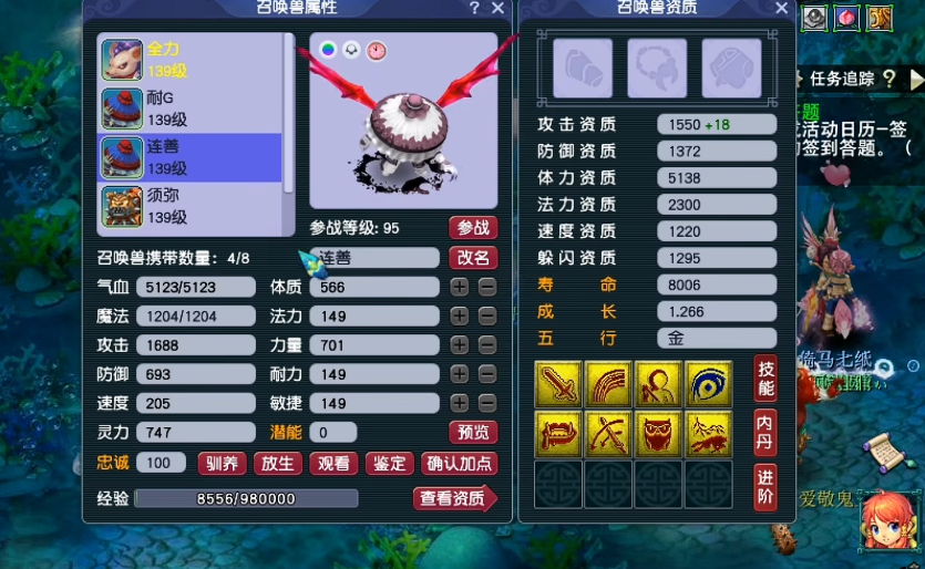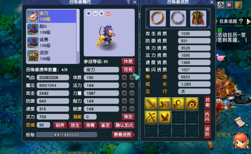 对于难度任务和PK场景,建议携带一只血宠作为战术保障。高防御资质的净台妙谛宠或高体资的配速血宠都很实用,能提供药品保护或复活支援。这类召唤兽技能选择上以高级神佑、高级防御为主,内丹推荐腾挪劲或玄武躯,确保在关键时刻能站得住。注意血宠的速度要精确调整,避免乱敏影响操作节奏。