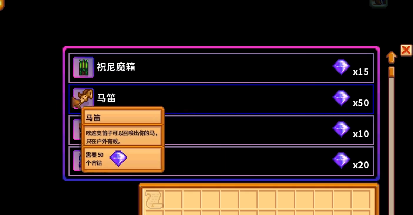 齐钻还能用来兑换各种稀有道具。在特定地点可以用它换到像马笛这样方便的工具,随时随地召唤坐骑真的超级实用。还有分解机这种能回收珍贵材料的设备,对喜欢收集的玩家来说简直是必备神器。兑换列表里还有增加洒水器范围的配件,能帮咱们省下不少打理农场的时间。