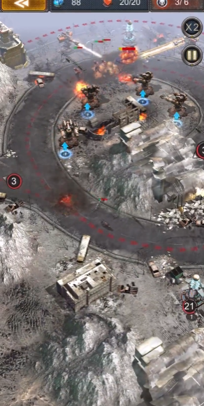 玩家需要注意敌人的波次变化,并根据情况及时调整防御策略。开局时应先清理外围的防御塔和敌人,优先摧毁高威胁的目标如反坦克炮和高射炮,避免它们对主力部队造成集中伤害。在应对不同波次时,可以利用特殊单位如飞龙或坦克在关键时刻发起反击,以快速削减敌人数量。保持部队的持续输出和防御塔的协同作战是关键,不要盲目推进以免浪费兵力。